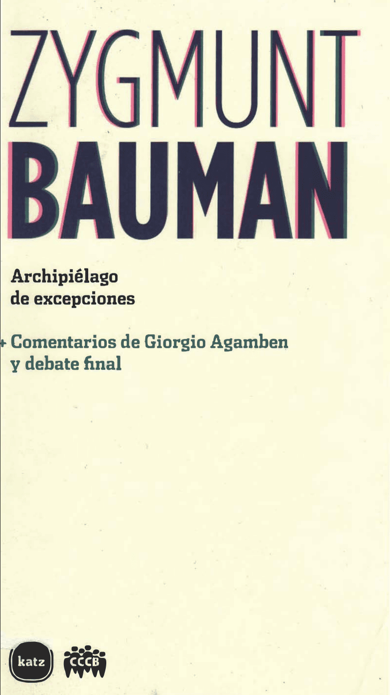 Bauman, Zygmunt, Archipiélago de excepciones + comentarios de Giorgio Agamben y debate final, Madrid: Katz, 2008.
