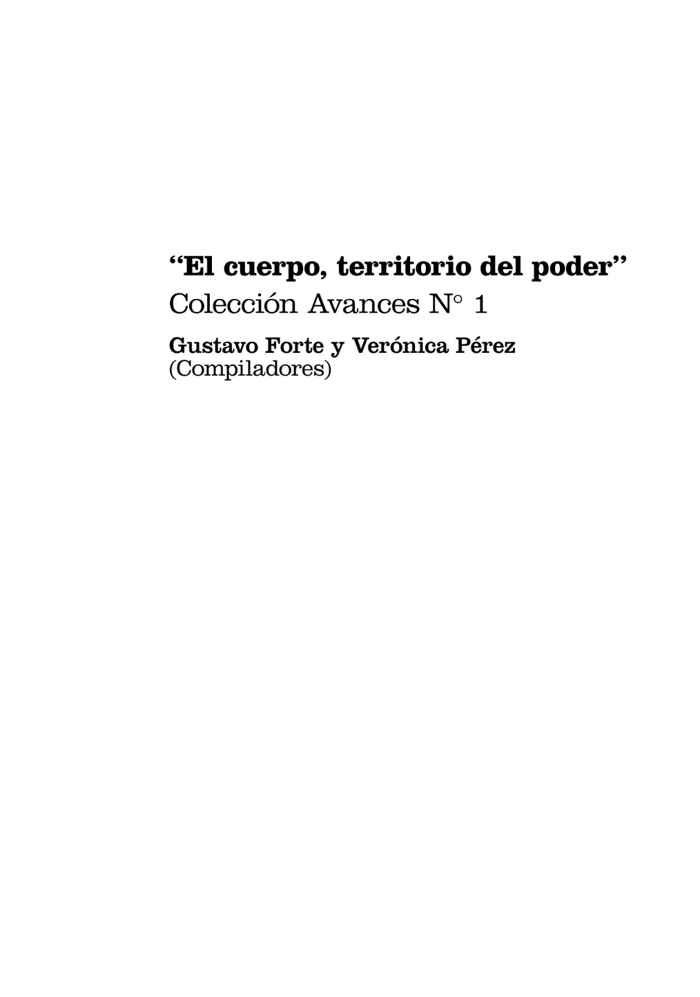Forte, Gustavo y Verónica Pérez (comps.), El cuerpo, territorio de poder, Buenos Aires: Ediciones P.I.Ca.So. , 2010.