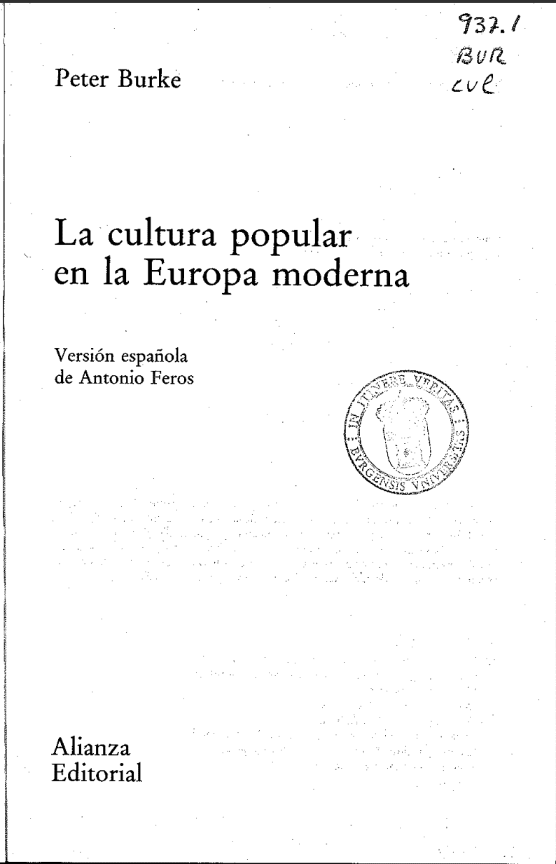 Burke, Peter, La cultura popular en la Europa moderna, Madrid: Alianza, 1996.