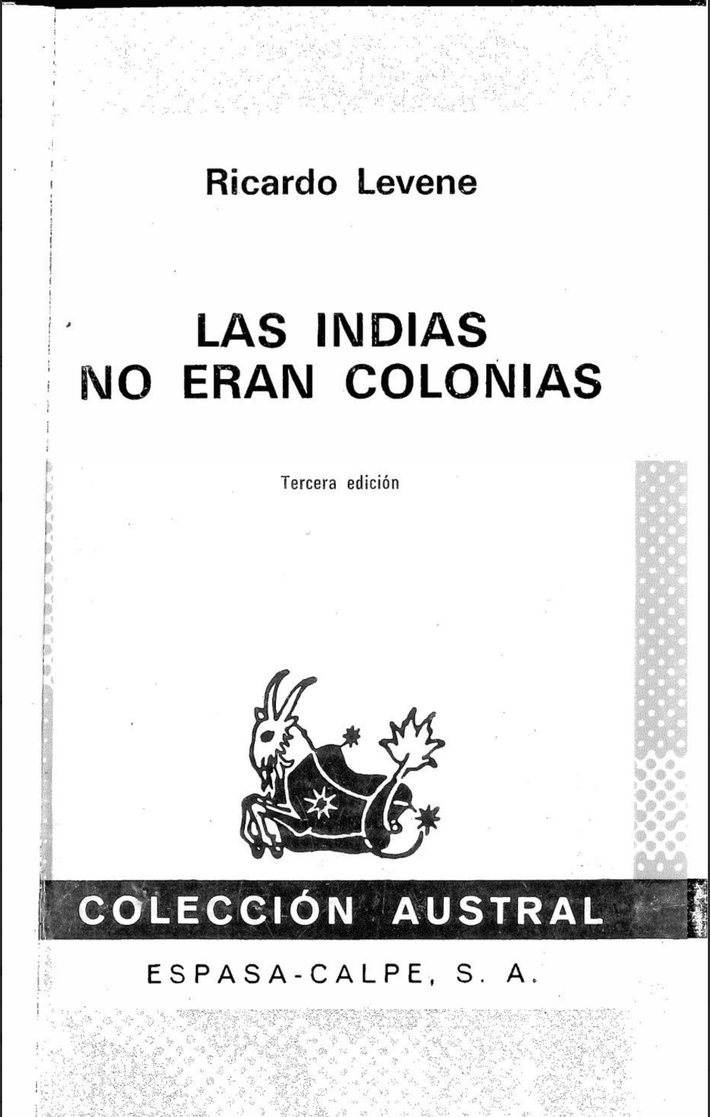 Levene, Ricardo, Las Indias no eran colonias, Madrid: Espasa-Calpe, 1973.